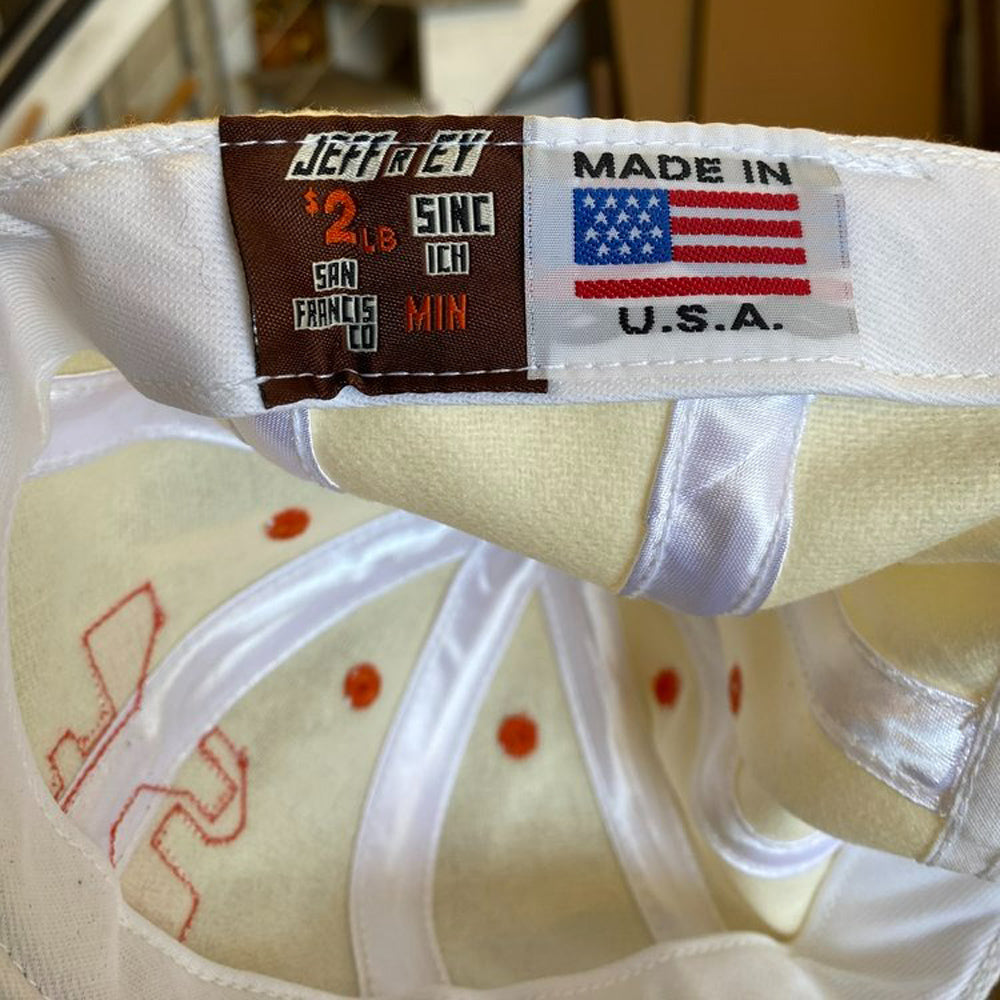 Show your love for the City with Jeffrey Sincich's SF Giants-inspired white and orange  baseball cap. This soft wool hat features a low profile, soft brim, 8-panel construction, and quilt-inspired lettering.