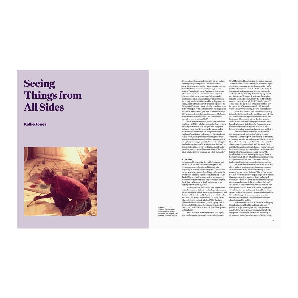 This wide-ranging book illuminates Jackson’s work and its connections to nature, environmentalism, performance, feminism, and Black and Native traditions. It explores the way her innovative hanging acrylic works break the canvas; the role of dance and set design in Jackson’s practice; and her trailblazing Los Angeles art space Gallery 32, which she ran from 1968 to 1970, and which became a focus for a circle of fellow emerging artists. The book also features artist dialogues between Jackson and Nengudi, Saar, Fred Eversley, and Richard Mayhew, as well as a conversation between Jackson and SFMOMA painting conservator Jennifer Hickey.