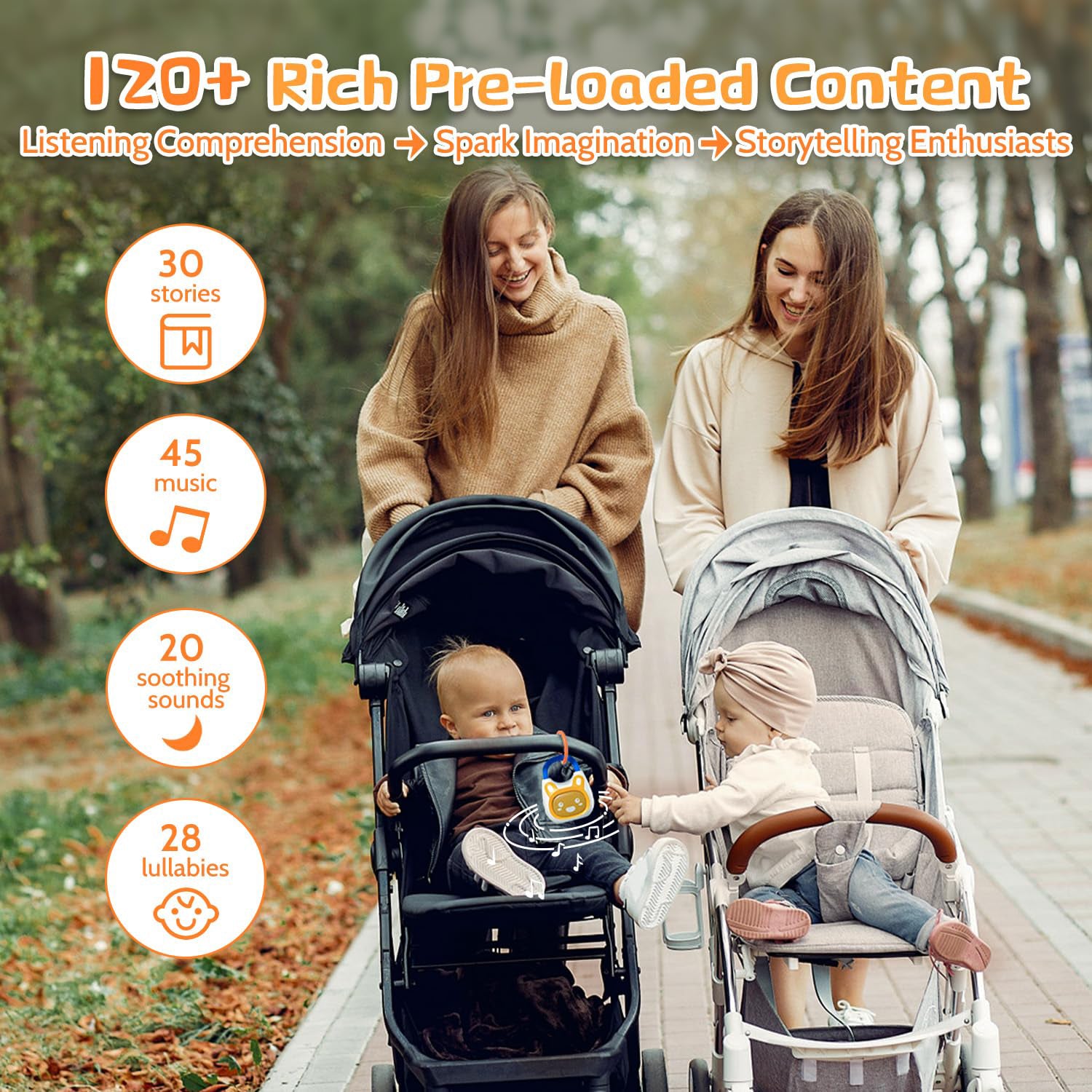 Designed for toddlers and infants, it features a durable, drop-resistant build, simple controls, and a soft silicone handle. With Bluetooth connectivity, rechargeable battery, and memory functions, it’s perfect for soothing entertainment at home or on the go. Hang it on a stroller, car seat, or backpack and enjoy storytime anywhere. Ideal for nurturing imagination, language skills, and peaceful sleep.