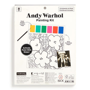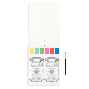 The Andy Warhol Painting Kit from Mudpuppy includes 10 paintable cards, each with a unique iconic Warhol print illustration, as well as a built-in watercolor paint palette at the top of each card and a watercolor brush which is neatly packaged in place with a cardboard insert at the back of the pad. Dip the brush in water, apply to the paint palette to activate the colors, and paint your masterpiece! A perforated edge allows the finished artwork to be easily separated from the paint palette for display.