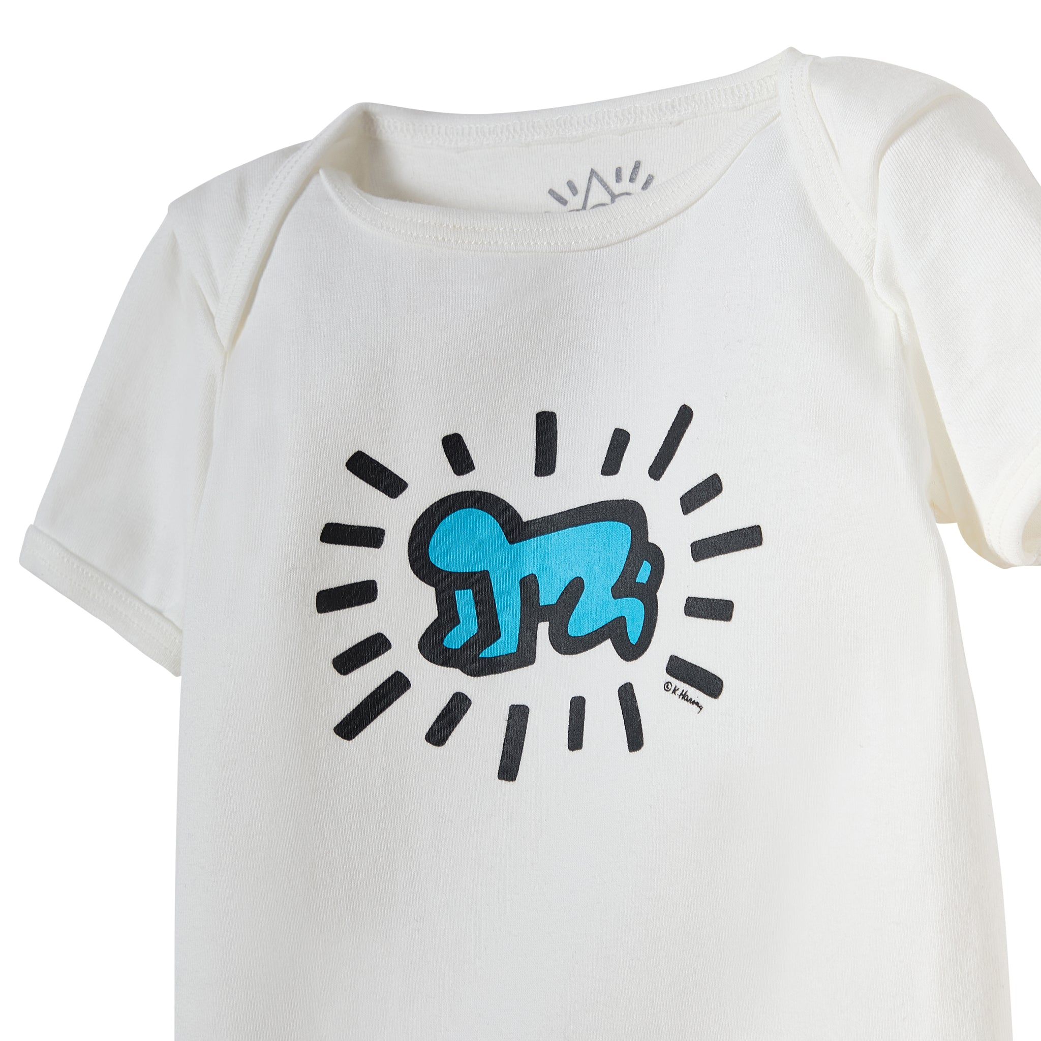 This soft onesie features Keith Haring's iconic radiant baby on the front.