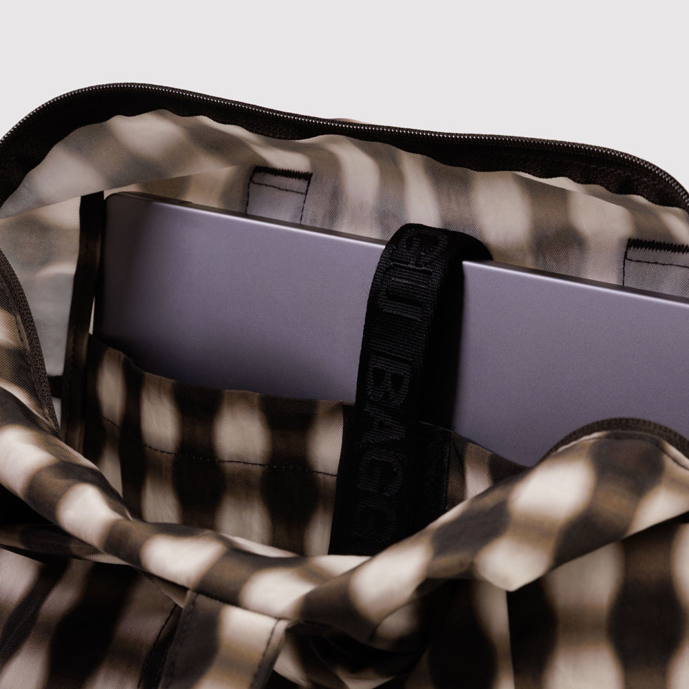 An everyday-sized version of Baggu's Small Cloud Carry-On with all the lightweight functionality of the original. Features a tech pocket that fits up to a 13/14" laptop, interior snap pocket, exterior front and side pockets, and packs into itself for easy storage.