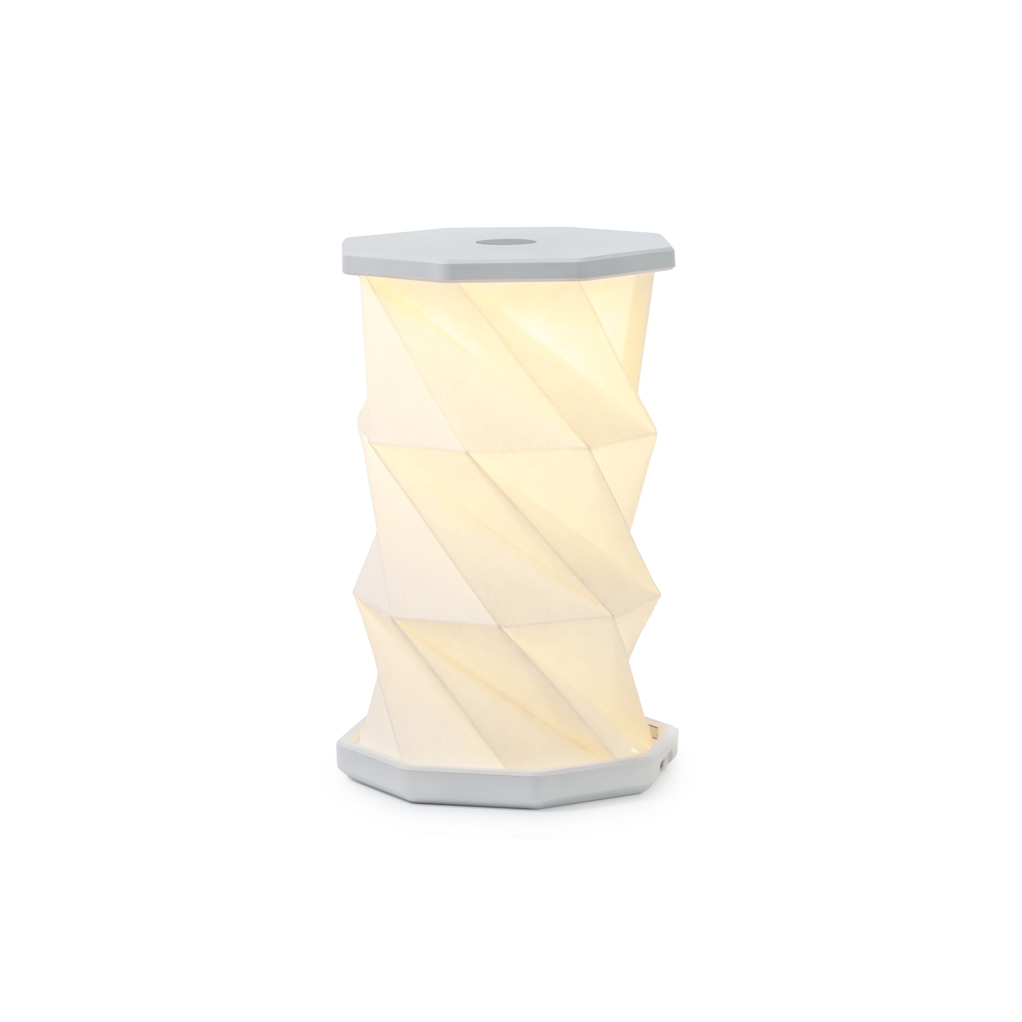 Compact, portable, and interactive, the Mini Hexagon Twist Light brings sculptural design and warm ambient light to any space. With a simple twist, it transforms from a modern accent into a versatile light source. Featuring a rechargeable USB-C battery (6-8 hours of use) and strong, durable paper. It's perfect for desks, bedside tables, and cozy corners.