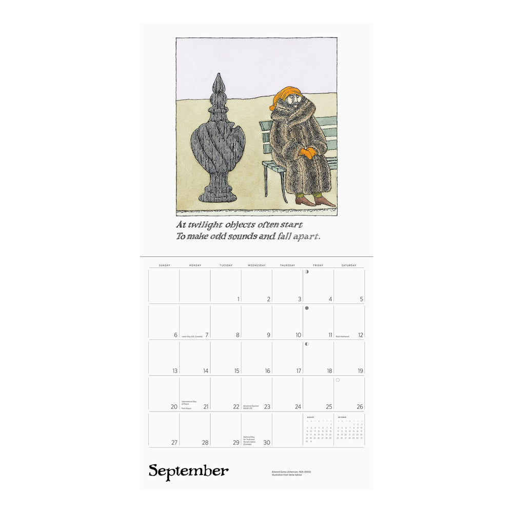 Beloved for the boundless imagination and sharp humor exhibited in his more than 100 published works, Edward Gorey has left an undeniable stamp on American art and culture. Imbued with a profound affection for literature, film, ballet, and animals, his humorously unsettling drawings of vaguely Victorian innocents facing unfortunate ends became familiar to a wide audience after appearing in the opening credits of the PBS television series Mystery! Gorey brought to life enigmatic, humorous tales from the laboratory of his mind as set and costume designer for theater productions, including a staging of Bram Stoker’s Dracula, for which he won a Tony. His Cape Cod home, a veritable cabinet of curiosities, is now a museum celebrating his life and work.