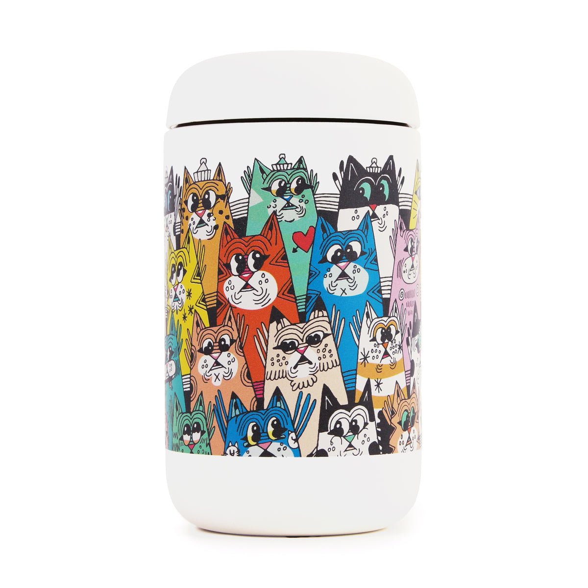 Materials: 18/8 stainless steel, BPA-free plastic and steel lid, inner ceramic coating.